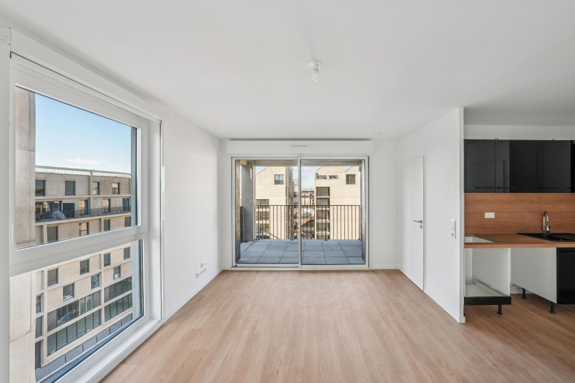 Séjour - cuisine ouverte (aménagée), ouvert sur une loggia