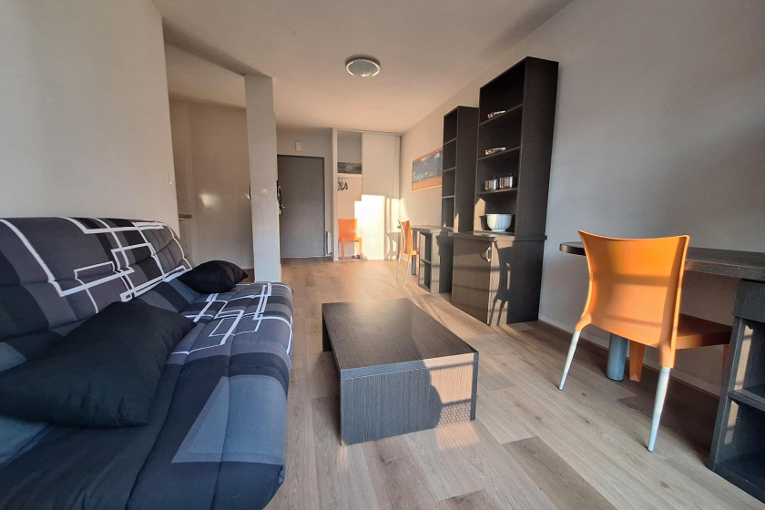 A LOUER - CARQUEFOU - LA FLEURIAYE - Appartement 2 pièces Meublé de 40 m2 (C.108) - Situé dans un quartier calme, proche de toutes commodités (écoles, commerces, transports), appartement de Type 2 entièrement MEUBLE. Situé au 1er étage avec ascenseur ce logement comprend : une entrée, un coin cuisine aménagée et équipée, une chambre, une salle d'eau et WC séparé. Place de parking en sous-sol. Chauffage et eau chaude individuels électriques.
