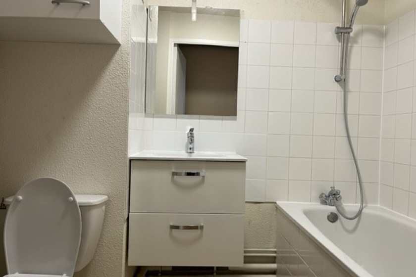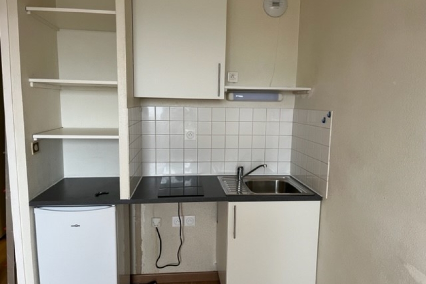 A LOUER - NANTES CITE DES CONGRES - Studio 17,92m² carrez - Idéalement placé, proche des transports et commerce, un appartement de type 1 au 5ème étage comprenant une entrée avec placard, un séjour avec un coin kitchenette équipée et une salle de bains avec WC.