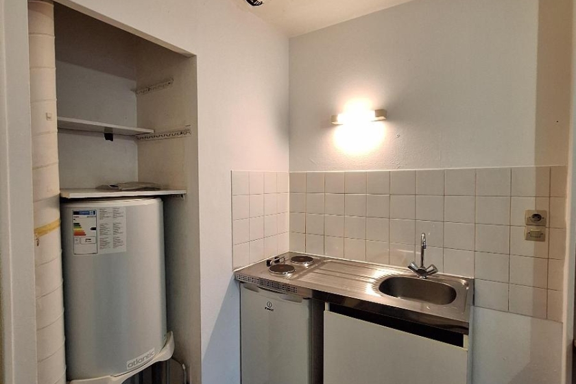 A LOUER - NANTES - ST CLEMENT - T1 17,6 m² - Proche du jardin des plantes, un studio d'environ 17.65m². Situé au calme d'une impasse, au 2ème étage de ce petit collectif sans ascenseur, le logement comprend une pièce de vie avec coin cuisine équipée (plaques de cuisson et réfrigérateur) et une salle d'eau avec WC.