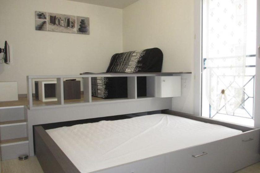 A LOUER - NANTES - CITE DES CONGRES - Studio MEUBLE de 18.79 m - Au cœur de ce quartier recherché, à deux pas de toutes commodités (tramways, gare, commerces, hyper centre...), studio MEUBLE de 18.79 m² EN TRÈS BON ÉTAT. Situé au 2ème étage avec ascenseur de cette résidence, ce logement lumineux se compose d'une entrée avec coin cuisine aménagée et équipée (plaques de cuisson, four et réfrigérateur) et un placard, une pièce à vivre exposée sud/est avec coin repas et coin salon monté sur estrade dissimulant un lit amovible et pour finir une salle d'eau avec WC. Chauffage et eau chaude individuels électriques.