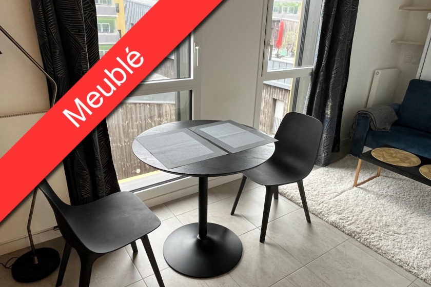 NANTES - LES MACHINES DE L'ILE - Appartement 1 pièce de 21 m² - Dans une résidence récente, un bel appartement meublé lumineux de type 1 de 21m² situé au 4ème étage avec ascenseur comprenant : une entrée avec placard, un séjour avec un coin cuisine aménagée et équipée (plaques, hotte, rangements, machine à laver, micro-onde), une salle d'eau avec WC.