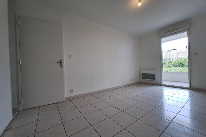 A LOUER - NANTES Cité des congrès - Appartement 2 pièces 42.85m² - Au cœur de ce quartier recherché, à deux pas de l'hyper centre, des transports, commerces et de la gare, bel appartement au calme côté cour de 2 pièces de 42.85 m². Situé au 1er étage de cette résidence de 2007, ce logement est composé d'un séjour avec cuisine aménagée et équipée (plaques de cuisson et hotte) le tout donnant sur un balcon avec vue sur espaces verts, d'un cellier et d'une chambre avec salle d'eau attenante. Place de parking en sous-sol sécurisé. Chauffage et eau chaude individuels électriques.