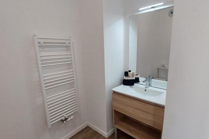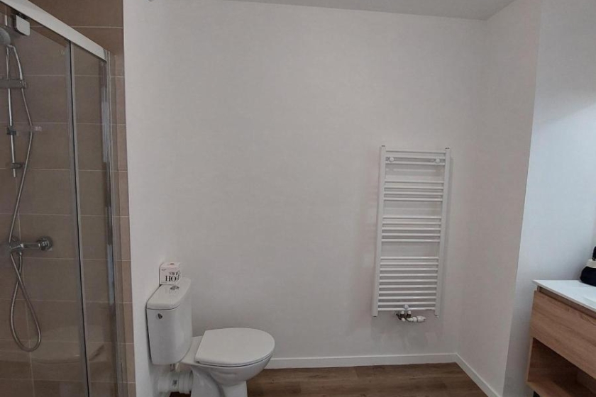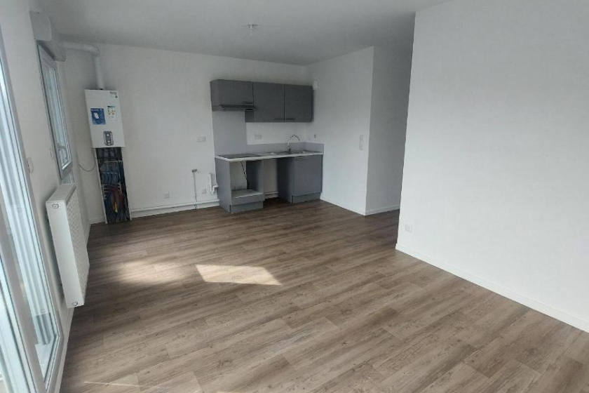 A LOUER - NANTES Jamet - T2 de 42,57m² - NEUF - Dans une résidence neuve, un appartement 2 pièces de 42,57m² situé au 2ème étage avec ascenseur. Ce logement comprend une entrée, une pièce de vie avec cuisine ouverte aménagée et équipée (plaques de cuisson, hotte) exposée sud, une chambre, une salle d'eau avec WC.