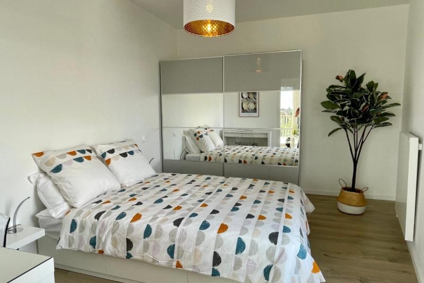 A LOUER - Appartement T2 Meublé - NANTES Vue LOIRE - Appartement T2 MEUBLE de 45.44m2 sur les bords de la Loire, à proximité du centre commercial BEAULIEU et des transports, dans une résidence de 2023 situé au 8ème étage avec ascenseur. L'appartement comprend, une entrée, une pièce de vie avec une belle cuisine aménagée et équipée (Four, hotte, plaques), un GRAND balcon de 12.44m² exposé sud-ouest donnant directement sur la Loire sans vis à vis, une salle d'eau avec WC et une chambre avec DRESSING et BUREAU. De nombreux rangements.