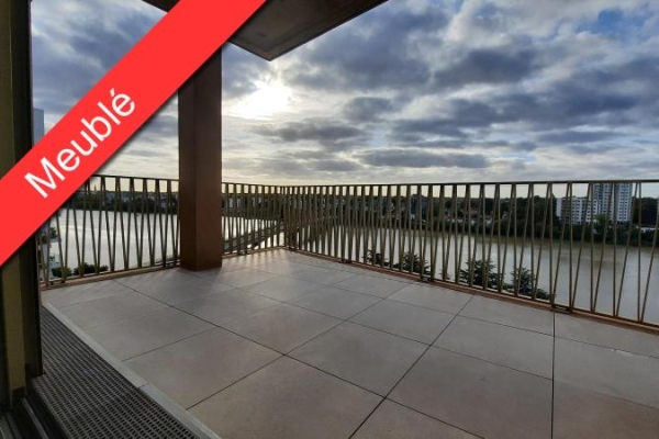 A LOUER - Appartement T2 Meublé - NANTES Vue LOIRE - Appartement T2 MEUBLE de 45.44m2 sur les bords de la Loire, à proximité du centre commercial BEAULIEU et des transports, dans une résidence de 2023 situé au 8ème étage avec ascenseur. L'appartement comprend, une entrée, une pièce de vie avec une belle cuisine aménagée et équipée (Four, hotte, pla...