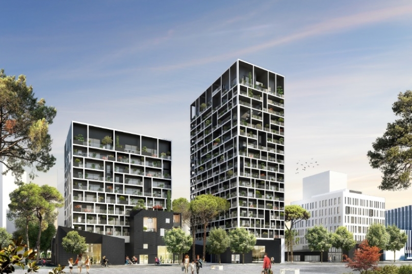 A LOUER - NANTES Gare SUD - Résidence TRYO - LOI PINEL. Appartement 3 pièces de 75 m² - Au cœur de ce nouveau quartier, à deux pas des commerces et des transports (bus, tramway ligne 1, Busway et trains), bel appartement de 3 pièces de 75 m². Situé au 16ème étage de cette résidence avec ascenseur, ce logement vous offre : une entrée avec placard, un vaste séjour de 37.70 m² avec coin cuisine aménagée et équipée, le tout donnant sur 2 loggias d'un total de 28.60 m² exposées EST/OUEST , deux chambres, une salle de bains et WC séparés.
