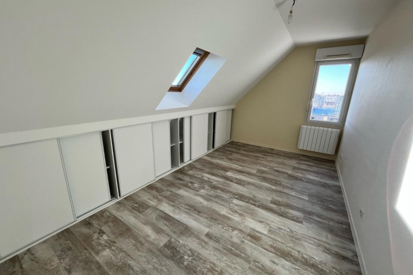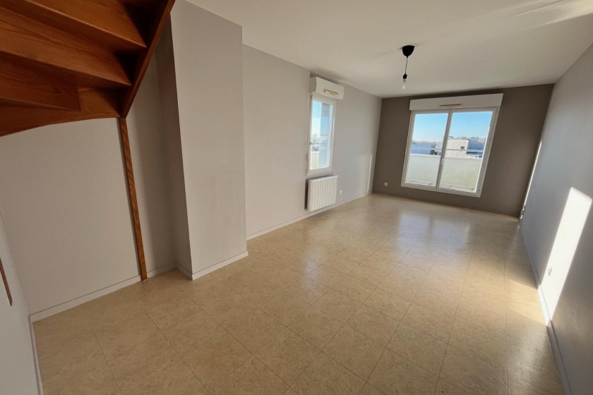 A LOUER - REZE - LA CLASSERIE Appartement de 3 pièces en DUPLEX de 63 m² - Appartement type 3 en DUPLEX de 63m², situé au 2ème étage et comprenant : au 1er niveau, une entrée, cuisine séparée aménagée et équipée, WC, séjour ouvrant sur terrasse. A l'étage, dégagement desservant, 2 chambres, salle d'eau et WC. L'appartement dispose d'un cellier et d'un garage double. Chauffage et eau chaude individuels électriques.