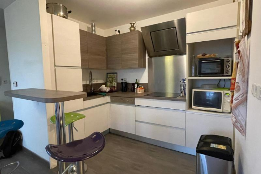 Meublé, il comprend deux chambres avec placard, une salle de bain, des WC séparés, un séjour-cuisine (équipée et aménagée) donnant sur un balcon et une arrière cuisine. Une place de parking privatif.