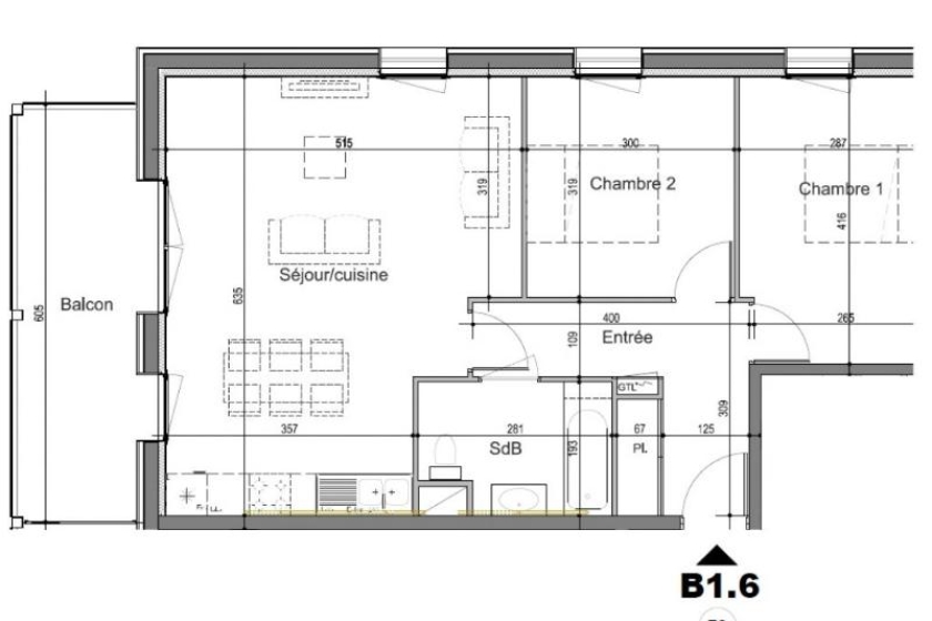 Dans un cadre verdoyant, à proximité de la salle de spectacles "La Carrière", d'Atlantis, et du périphérique porte de St Herblain. Un appartement 3 pièces de 63m², situé au 1er étage avec ascenseur, comprenant : une entrée avec un placard aménagé, deux chambres, un salon avec un coin cuisine aménagé (meubles hauts, hotte, plaque de cuisson), le tout ouvrant sur une grande terrasse de 10,87m².