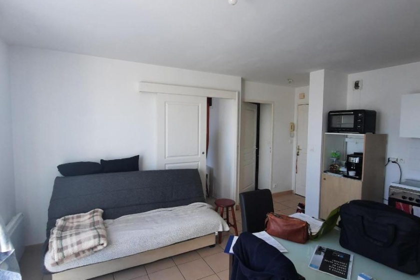 Au 3ème et dernier étage, au sein d'une résidence sécurisée avec ascenseur, un appartement de type 2 d'uns surface de 33m² comprenant une pièce de vie avec coin cuisine, une chambre avec placards, une salle d'eau avec wc. Une place de parking. Le bien est soumis au statut de la copropriété.