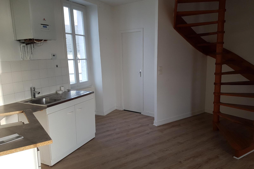 Un appartement de type 2 au 1er étage d'une surface de 40m² comprenant un séjour avec coin cuisine aménagée, un wc. A l'étage une chambre, un bureau et une salle d'eau. Terrasse
