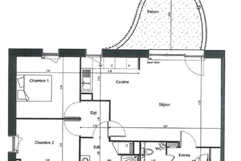 A LOUER - VERTOU - LE CHENE - Appartement 3 pièces de 64,50 m² - Au cœur de ce quartier résidentiel proche du centre et au pied des transports (bus ligne 97), appartement de 3 pièces de 64,50 m². Situé au premier étage de cette résidence à 200 mètres des bords de Sèvre, ce logement vous offre une entrée avec placard et WC, un séjour avec coin cuisine ouvert le tout donnant sur un balcon de 13.13 m², un dégagement, deux chambres et une salle d'eau. Place de parking en sous-sol sécurisé.