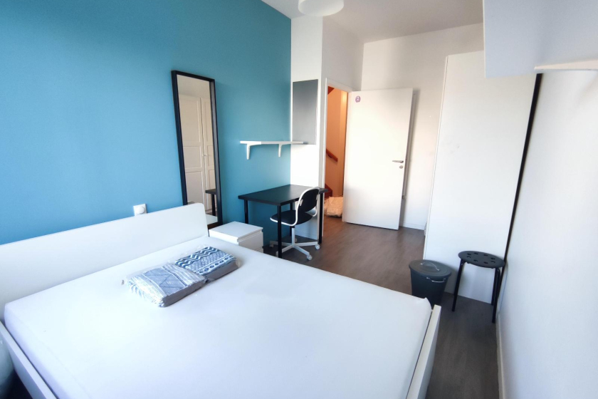- Cuisine entièrement équipée : plaques induction, four, micro-ondes, vaisselle, ustensiles, petit électroménager et un réfrigérateur par colocataire