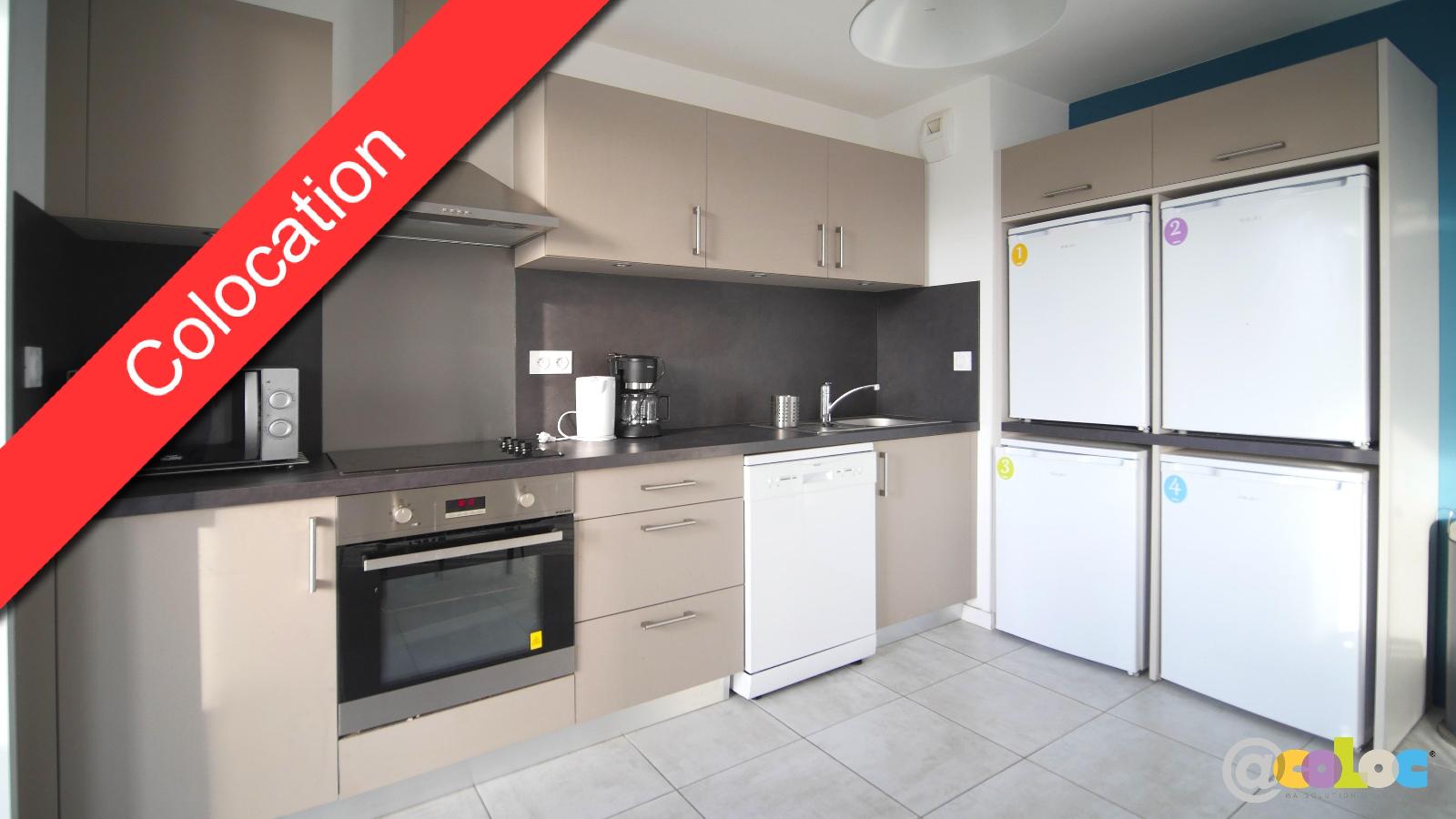 - Cuisine entièrement équipée : plaque, induction, four, micro-onde, vaisselle, ustensiles, petit électroménager et un réfrigérateur par colocataire.