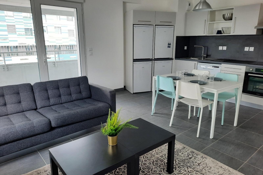 « @coloc est un concept de coliving et de colocation clef en mains, destiné aux jeunes actifs et aux étudiants, présent sur les villes de Nantes et de Rennes. Ici, vous bénéficiez d'un appartement T5 d'une superficie de 90m² qui comprend 4 chambres de superficie égale. L'appartement est neuf, entièrement équipé, adapté à la colocation, au sein d'une résidence récente (2021) et sécurisée.