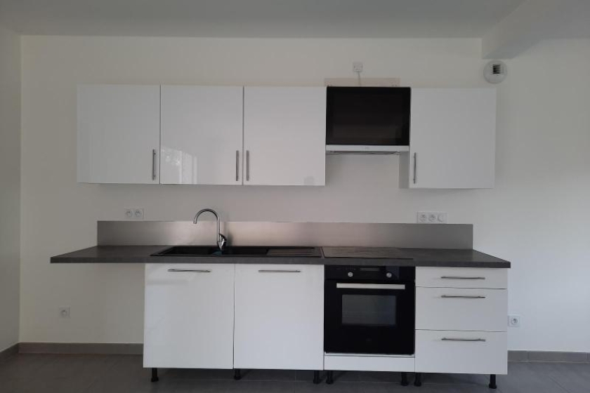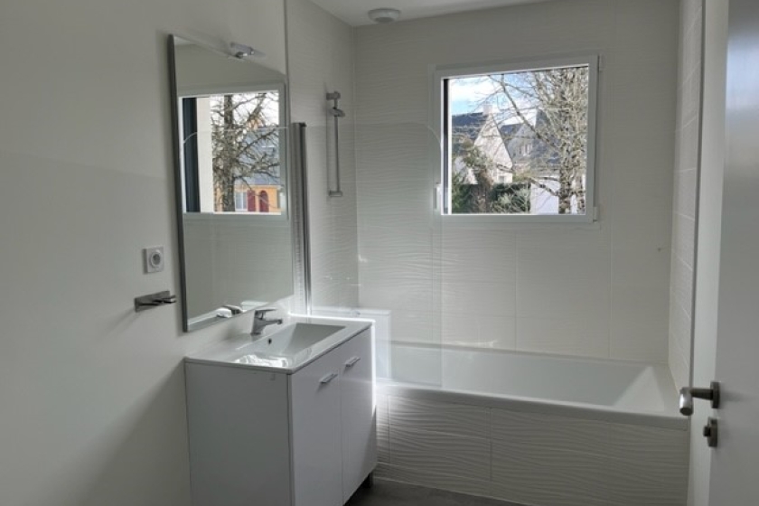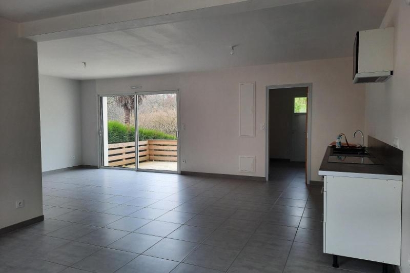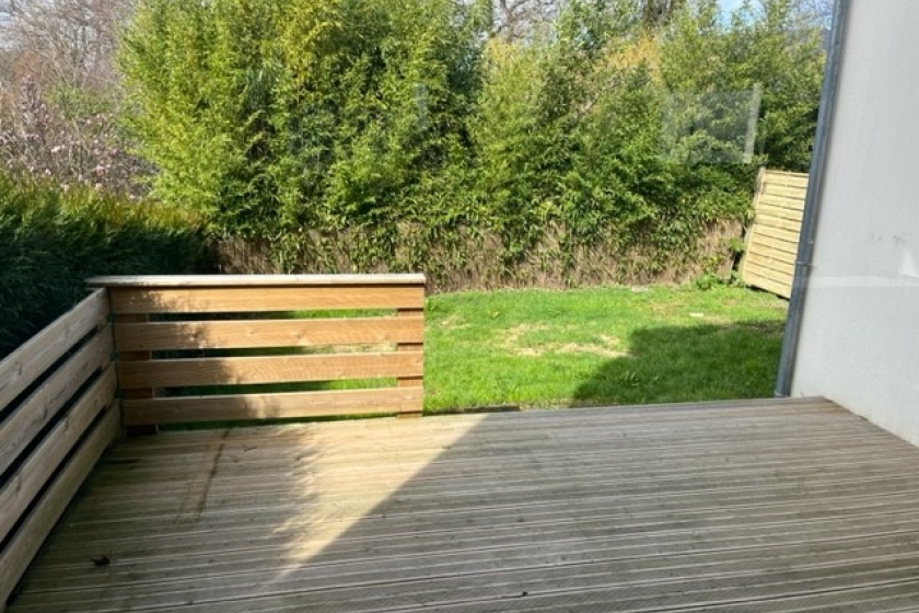 A LOUER - ORVAULT - Maison T4 de 104m² - Belle maison à étage de 104m², comprenant une entrée avec placard, au rez-de-chaussée : un WC, un salon avec cuisine aménagée et équipée (four, plaques et hotte) de 40.95m², une arrière cuisine avec douche, le tout donnant sur une terrasse et un jardin. A l'étage, 3 chambres de plus de 10m² chacune, un WC, une salle de bains.