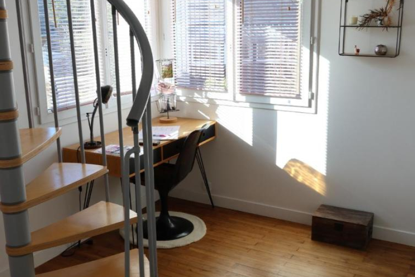 Au 1er étage, deux chambres dont une avec dressing, un bureau, une salle de bains avec douche et baignoire. Au dernier étage, deux chambres et sanitaires.