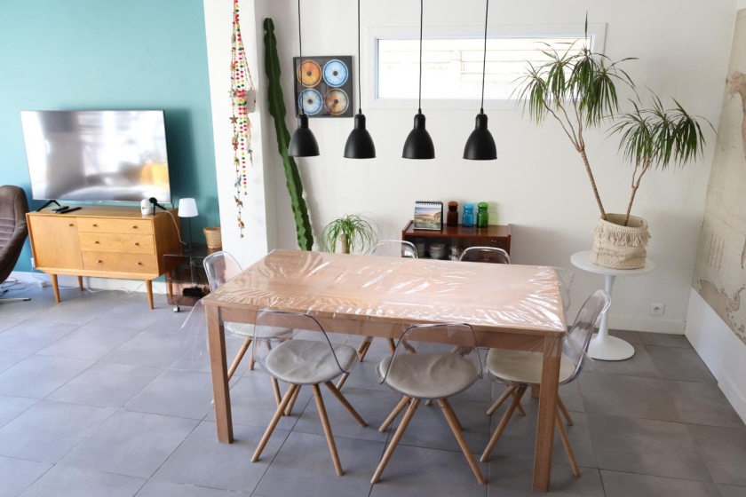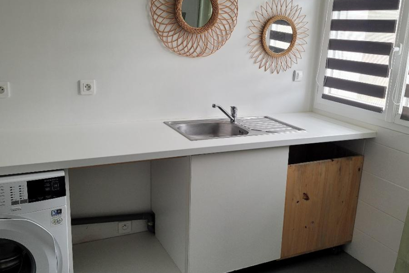 Maison d'habitation meublée de type 5 d'une surface de 131m² comprenant une entrée, une buanderie avec douche, une pièce de vie avec une cuisine aménagée et équipée donnant sur un jardin cloc et arboré avec sa terrasse en bois.