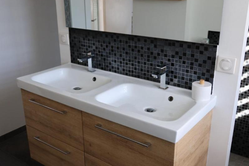 Au 1er étage, deux chambres dont une avec dressing, un bureau, une salle de bains avec douche et baignoire. Au dernier étage, deux chambres et sanitaires.