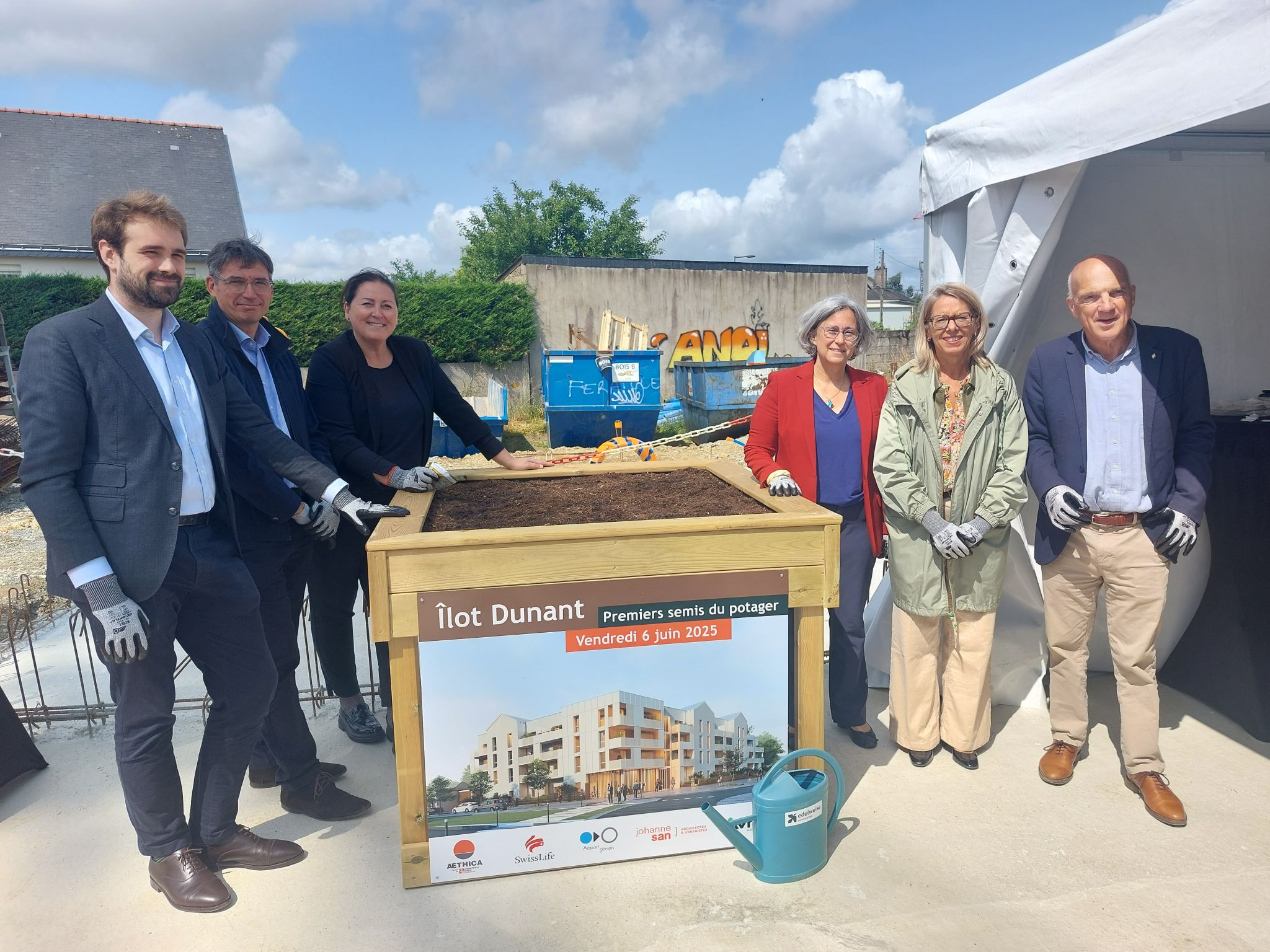 Le vendredi 6 juin, à l’occasion du démarrage des travaux de la future résidence seniors ÎLOT DUNANT, AETHICA a réuni les acteurs du projet pour une action symbolique et engagée : la plantation des premier semis du futur potager partagé.