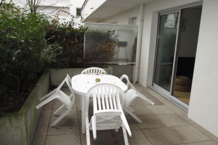 A LOUER - NANTES - CITE DES CONGRES - Appartement 2 pièces de 29.89 m² - Au cœur de ce quartier recherché, à deux pas de l'hyper centre, des transports (tramways ligne 1/2/3, bus et busway ligne 4), commerces et de la gare, appartement de 2 pièces de 29.89 m². Situé en rez-de-jardin de cette résidence sur les bords du canal St Félix, ce logement est composé d'une entrée avec placard, d'un séjour avec cuisine ouverte aménagée et équipée (plaques de cuisson gaz et réfrigérateur) le tout donnant sur une terrasse privative de 17m² avec vue sur les espaces verts de la copropriété, d'une chambre et d'une salle d'eau avec WC.