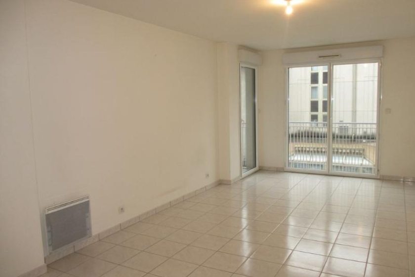 A LOUER - NANTES - CITE DES CONGRES - Appartement 2 pièces de 44.85 m2 - Au coeur de ce quartier recherché, à deux pas de l'hyper centre, des transports (tramways ligne 1/2/3, bus et busway ligne 4), commerces et de la gare, bel appartement de 2 pièces de 44.85 m². Situé au 2ème étage de cette résidence récente de standing, ce logement est composé d'une entrée avec wc, d'un séjour avec cuisine américaine aménagée et équipée (plaques de cuisson et réfrigérateur) le tout donnant sur un balcon, d'un cellier, d'une chambre avec placard et d'une salle de bains. Place de parking en sous-sol sécurisé.