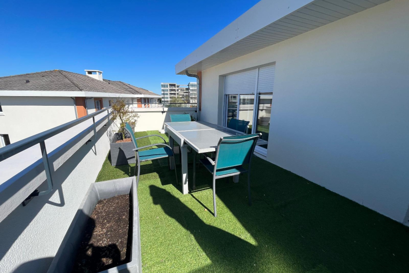 A LOUER - NANTES - ROUTE DE SAINTE LUCE - Appartement MEUBLE 2 pièces de 60m² - TERRASSE 28m² - PARKING - Un grand appartement 2 pièces meublé d'une superficie de 60m². Situé au 3ème étage et dernier étage avec ascenseur, ce logement vous offre une entrée avec cellier, un salon/séjour lumineux avec cuisine ouverte aménagée et équipée le tout donnant sur une terrasse de 28m² exposé Sud-Ouest. L'espace nuit est composé d'une chambre avec placard, une salle de bain et WC séparé.