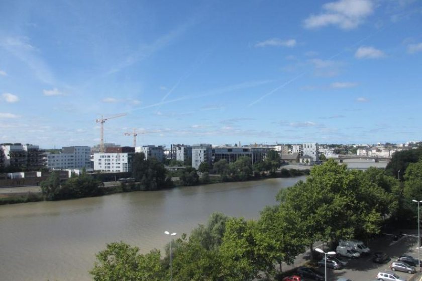 A LOUER - NANTES - ILE GLORIETTE - Appartement 3 pièces de 78 m² (N° 6.1) - A LOUER - NANTES - BORDS DE LOIRE. Dans cette résidence BBC de bon standing, à deux pas de l'hyper centre et des transports, bel appartement de 3 pièces d'une superficie de 78m². Situé au 6ème étage avec ascenseur, ce logement vous offre une entrée avec placards, un séjour exposé plein Sud ouvert sur un balcon face Loire de 9.50 m², une cuisine ouverte séparée de la pièce de vie par une table/bar et équipée de plaques à induction, four et hotte, un cellier, 2 grandes chambres avec placard, une salle d'eau et WC séparés. Un garage et une place de parking en sous-sol sécurisé et un local vélo privatif pouvant faire office de cave. Accès à la salle de sport privée au rez-de-chaussée de l'immeuble.