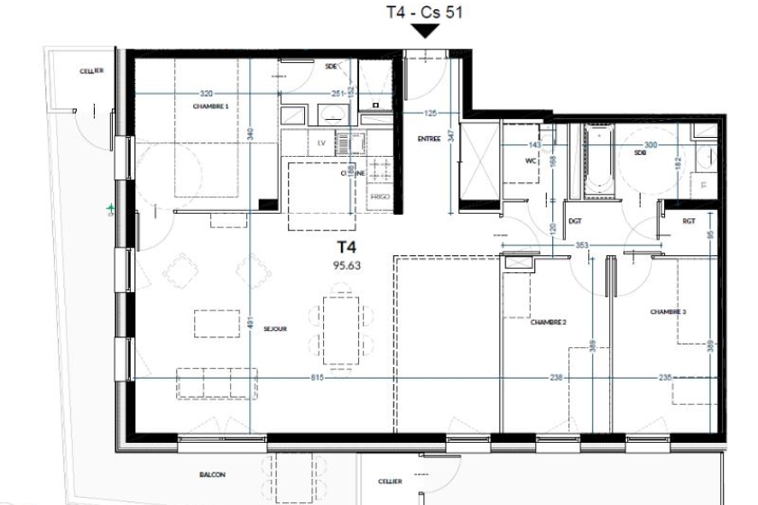 Louer appartement 4 pièces de 95 m²