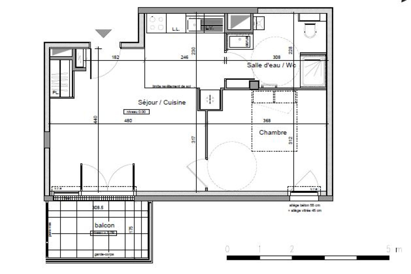 Au sein d'une résidence de 2018, un appartement de type 2 au 6ème étage de 41.73m² comprenant une pièce de vie avec cuisine ouverte aménagée et équipée (plaques et hotte) donnant accès à un balcon de 5.39m², une salle d'eau avec wc, une chambre.