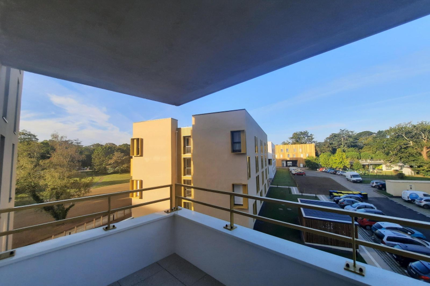 Un appartement au sein d'une résidence de 2023de type 2 d'une surface 41m² comprenant un séjour-cuisine aménagée et équipée (plaques, hotte), une chambre, une salle d'eau avec wc et un balcon.